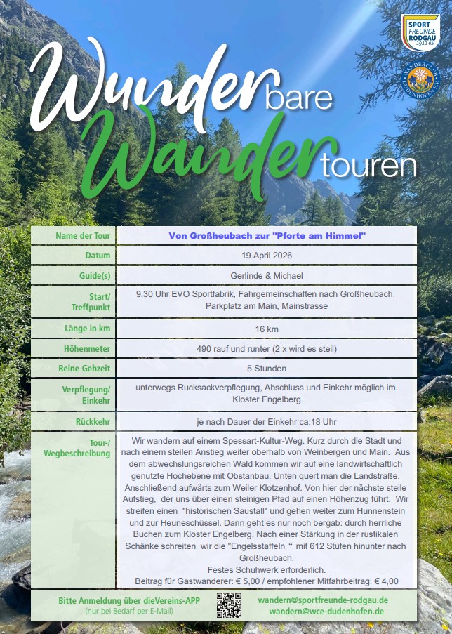Treffpunkt ist am 19.04.2026 um 9:30 h an der EVO Sportfabrik in Rodgau-Jügesheim.