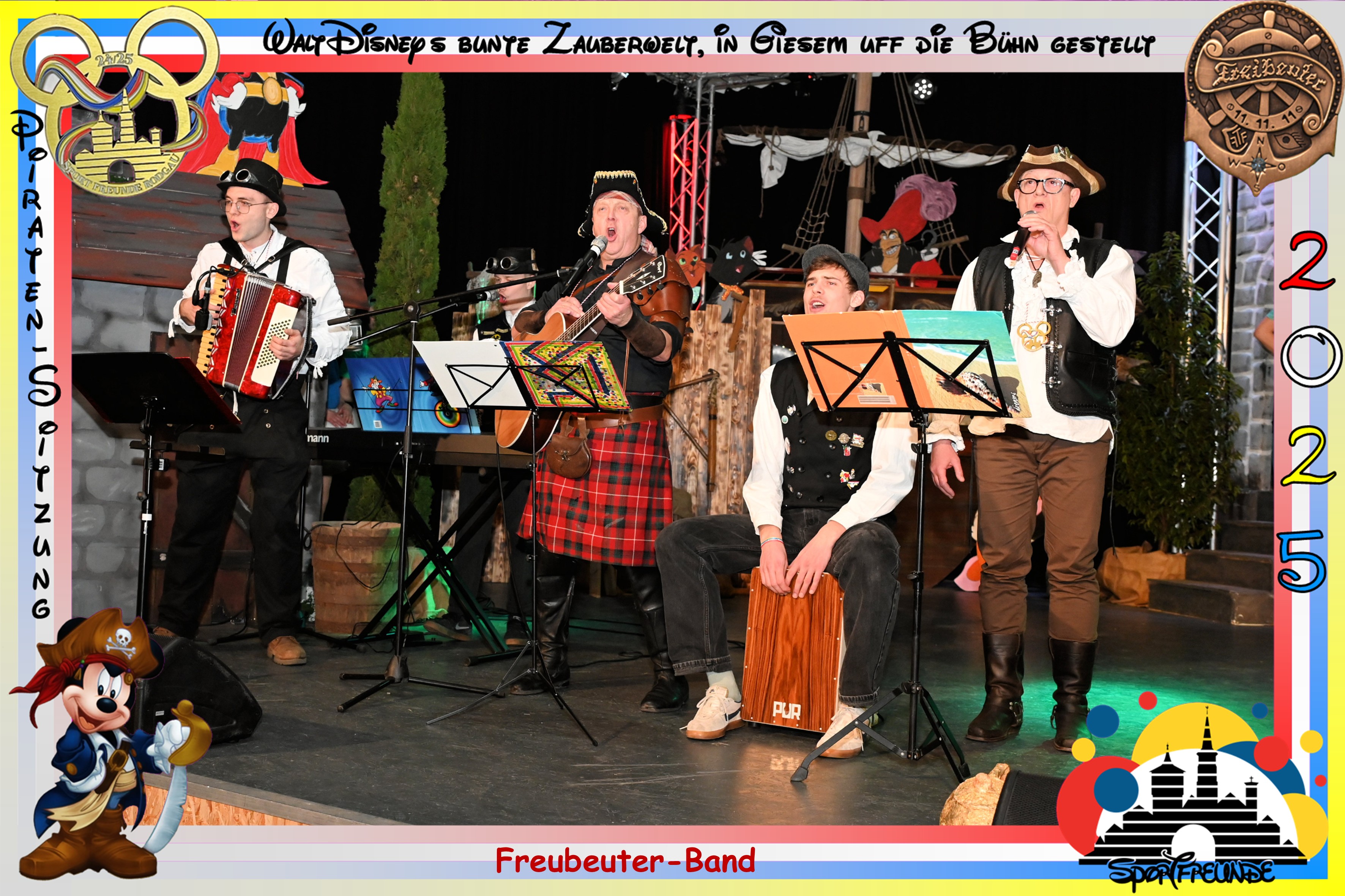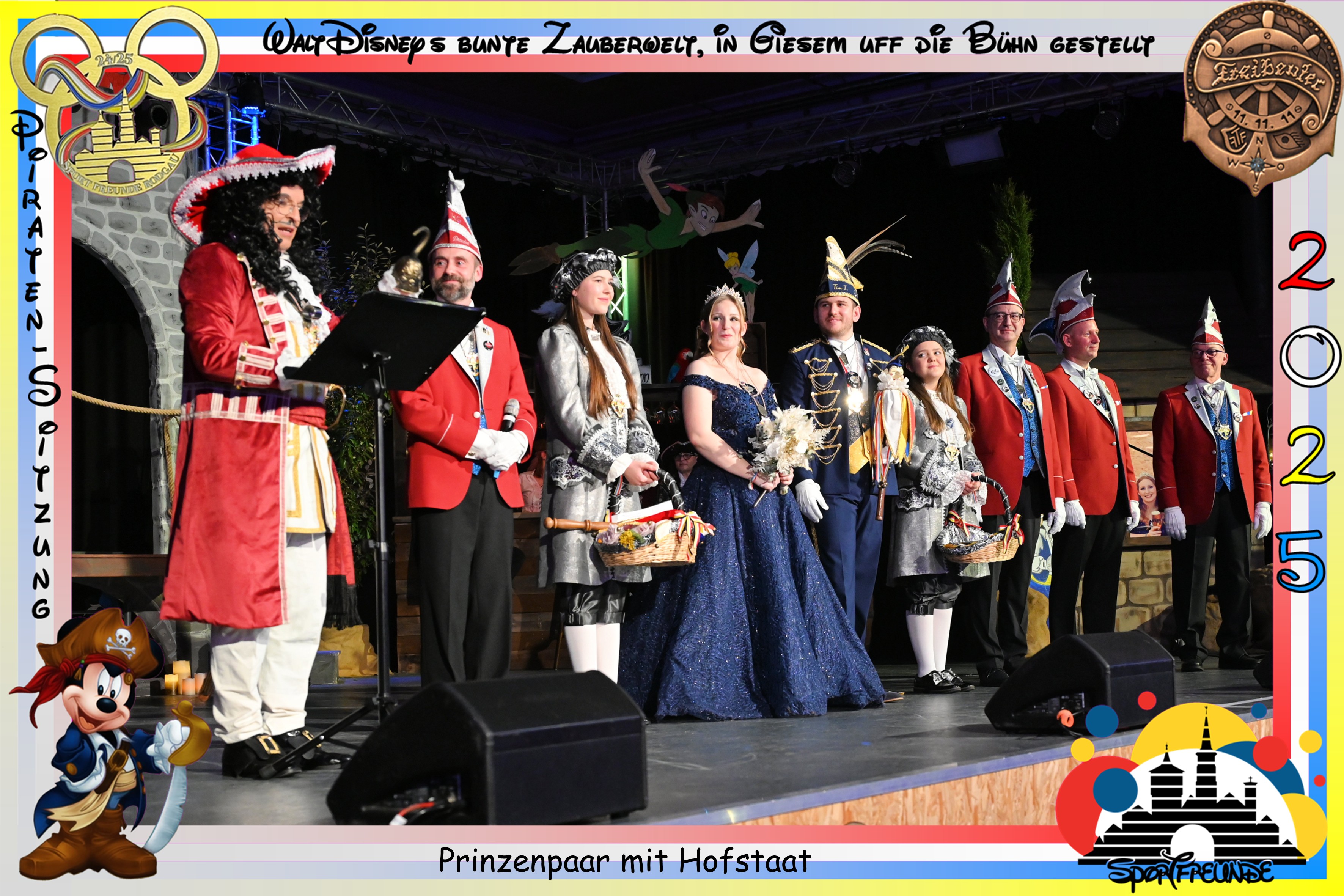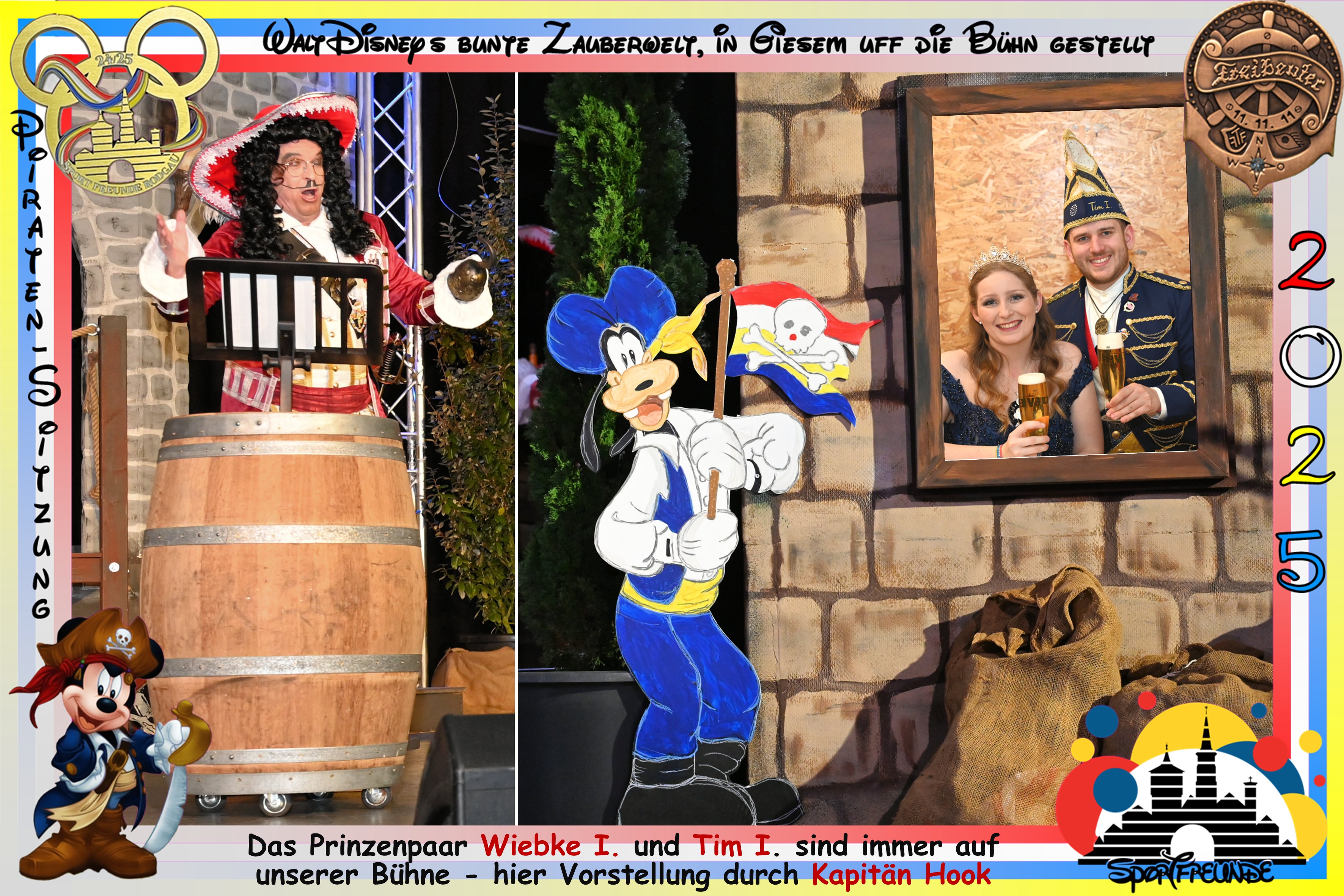 Die Elefantenparade im Piratenkostüm, angeführt von Smee aus Peter Pan, den Michael Weimer grandios verkörperte. Klaus Auth als Kaffeekanne aus „Die Schöne und das Biest“, Andreas Staudter (Tick Duck) und Thorsten Hahn ( Panzerknacker ) holten das Publikum gesanglich ab und der gesamte Saal schwörte Kapitän Hook (Marcel Rupp) die Gefolgschaft.