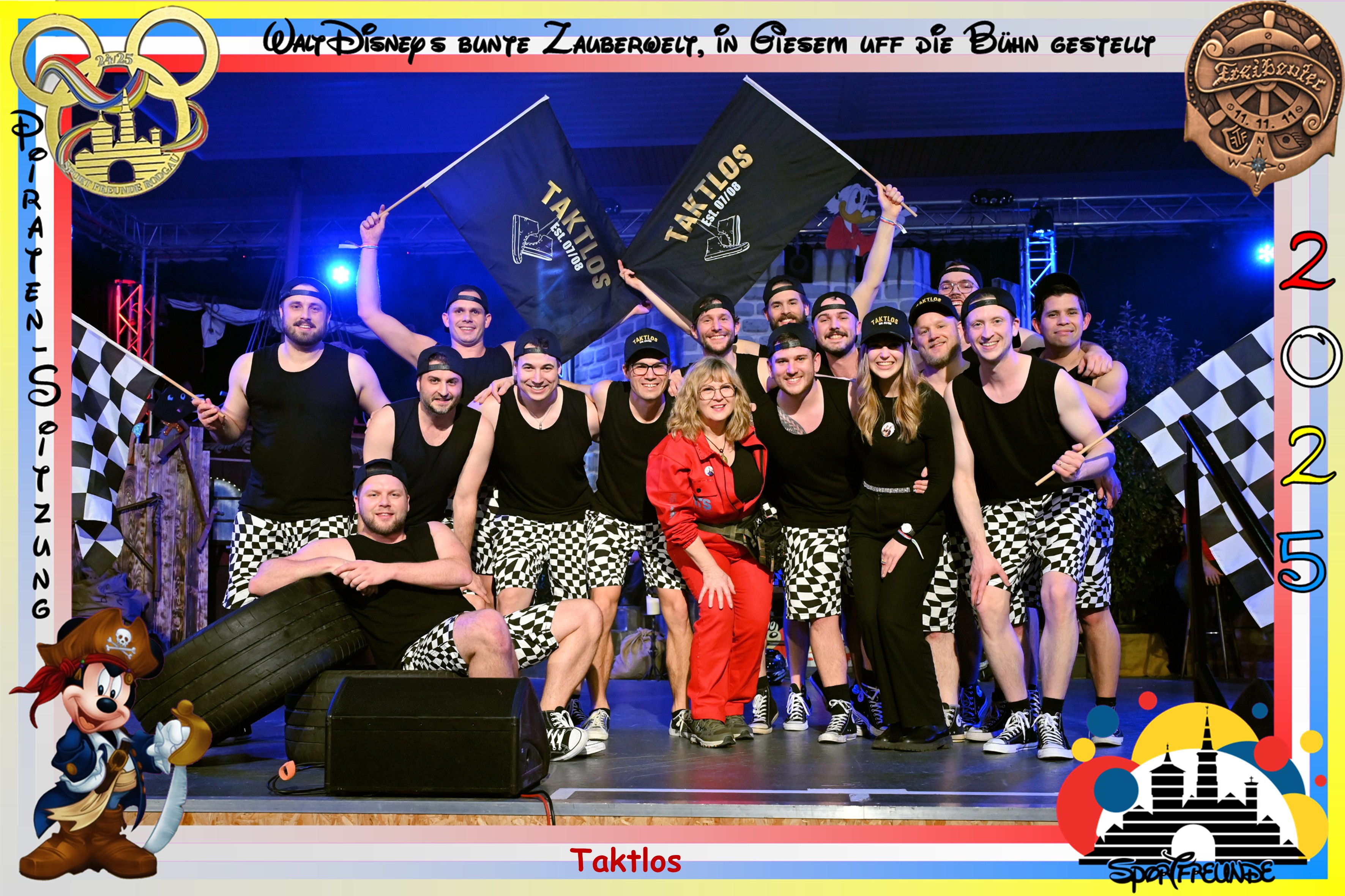 Die Männertanzgruppe „Taktlos" brachte 2025 mit dicken Reifen und coolen Jungs das Thema Formel 1 auf die Bühne.