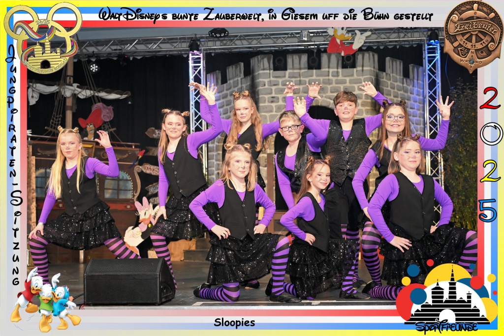 Die Sloopies (Anastasiia, Emma, Melina, Stella Marie, Johanna, Sophia, Jan, Sophie, Oskar und Nele) lieferten passend zum diesjährigen Motto der Sportfreunde einen Showtanz zu Alice im Wunderland. Als Grinsekatzen verkleidet begeisterten sie das Publikum. Trainiert wird die Gruppe von Kathrin Barral, Saskia Witt und Anja Roth.