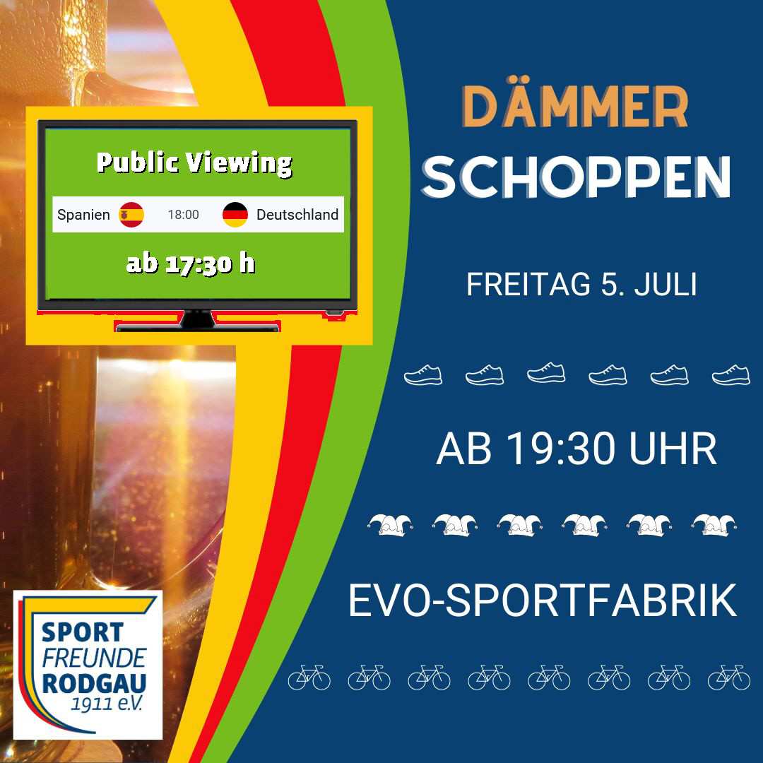 Einladung zum Juli-Dämmerschoppen am 5. Juli 2024 mit Public Viewing ab 17:30 Uhr