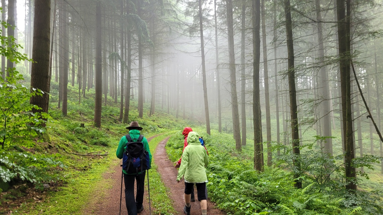 Weder Regen noch Fußball-Ergebnisse konnten die gute Laune in der Wandergruppe vertreiben. Die erste Tour begann im Sonnenschein auf dem Schusterpfad. Bizarre Sandsteinformationen prägten das Landschaftsbild. Auf dem Weg zum Waldhaus "Dicke Eiche" setzte Regen ein, der Spaß an der Wanderung blieb bestehen.