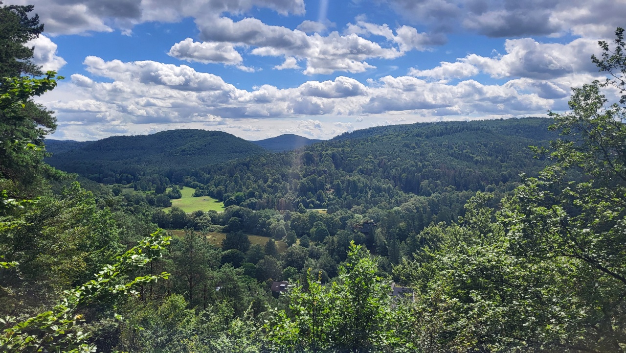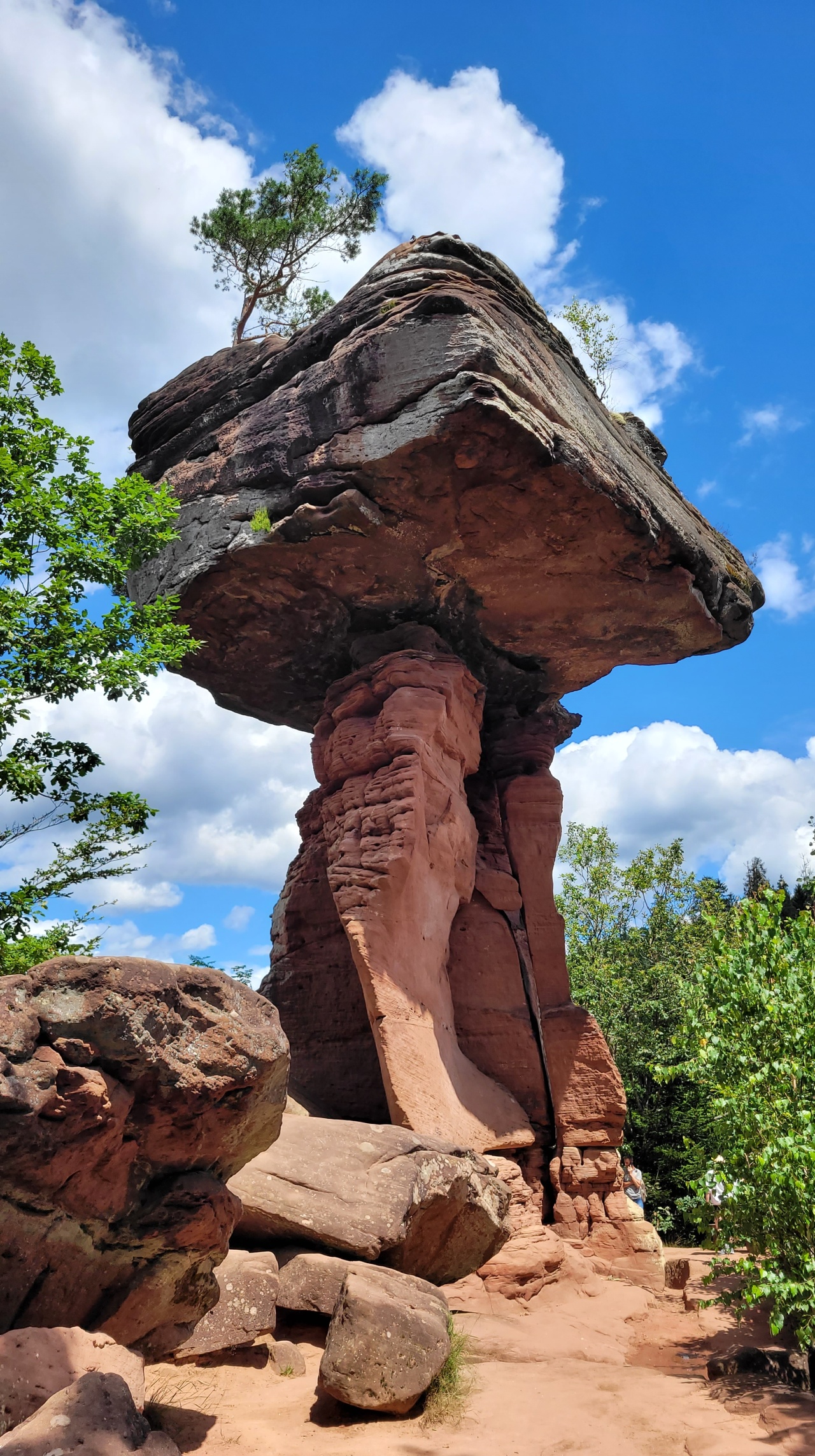 Trocken war es am nächsten Tag bei der Tour in Hinterweidenthal. Bei dem Lauf durch den Wald wurden immer wieder Ausblicke in den schönen Wasgau ermöglicht. Der Höhepunkt war das Naturdenkmal Teufelstisch, ein Sandsteinfels, imposant geformt. Die Schluss Einkehr rundete das schöne Wochenende ab.
