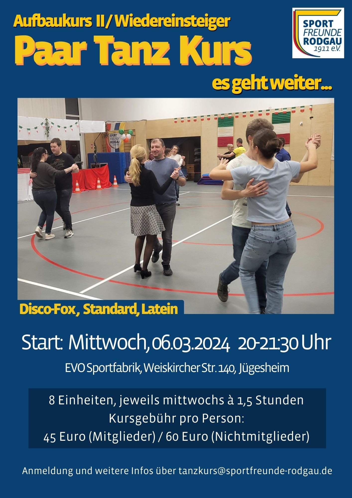 Dann kommt zum nächsten Aufbaukurs mit unserem Tanzlehrer Sebastian Gebhard.