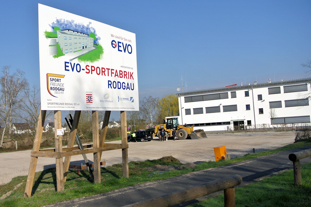 Nach einer sehr langen und für Außenstehende unsichtbaren Klärungs- und Planungsphase, wird man nun in den nächsten Wochen und Monaten neben der Feuerwache Mitte die EVO-Sportfabrik, die neue Halle der Sportfreunde Rodgau, wachsen sehen können.