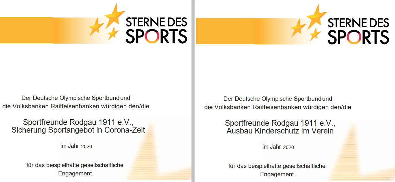 Gleich zweimal konnten die Sportfreunde Rodgau 1911 e.V. in diesem Jahr beim Wettbewerb „Sterne des Sports“ gewinnen.
