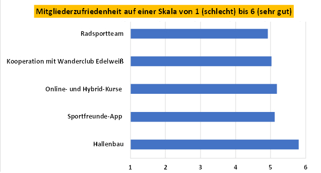 Die Mitgliederumfrage 2021 zeigte eine hohe Zufriedenheit mit den verschiedenen Angeboten der Sportfreunde. Viele Anregungen wurden und werden geprüft und wenn möglich umgesetzt.